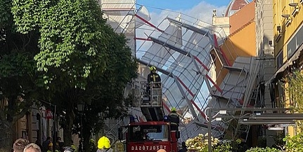 Az Aranyhajó Fogadó állványzata nem bírta a vasárnap tomboló orkán erejű szélt, és a szemközti étterem teraszára dőlt. A sétálóutca ezen részét lezárták.