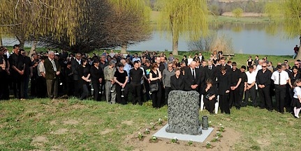 Képünkön: gyászolók a temetésen, az elhunyt barátai által emelt emlékkőnél. Balogh Lászlót a rendőrség szerint egy büntetett előéletű, orvvadászként is ismert férfi március 16-án lelőtte, társát súlyosan megsebesítette, mert illegális tevékenysége miatt kérdőre akarták vonni Magyarlukafa és Vásárosbéc között.