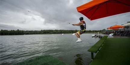 Képünkön: egy wakeboardos startol a pécsi Central Wakeboard és Szabadidő Parkban augusztus 20-án, a nyitónapon.