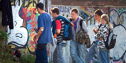 Képünkön pécsi fiatalok firkálnak a vasúti sínek melletti, úgynevezett legálfalon - ezt a helyet jelölték ki számukra, itt büntetlenül hódolhatnak szenvedélyüknek.